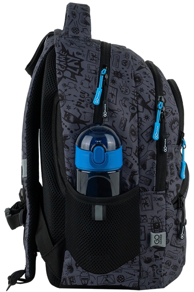 - su 2-jomis kišenėlėmis šonuose vandens buteliukui, gertuvei, skėčiui ar kt.;