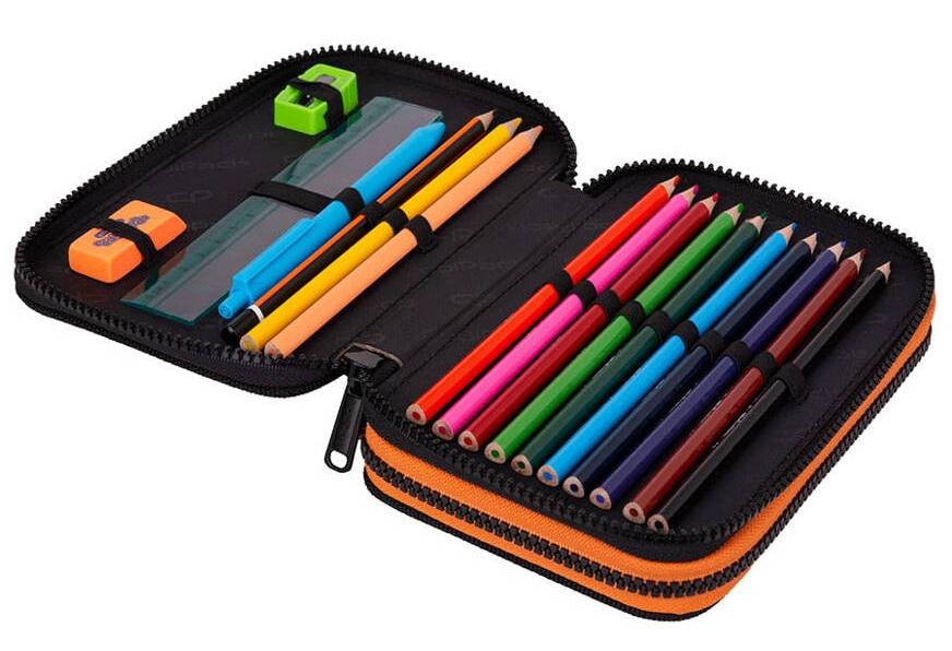 - pirmame skyriuje: drožtukas, trintukas, liniuotė, tušinukas, grafitinis pieštukas, 12 spalvotų pieštukų;